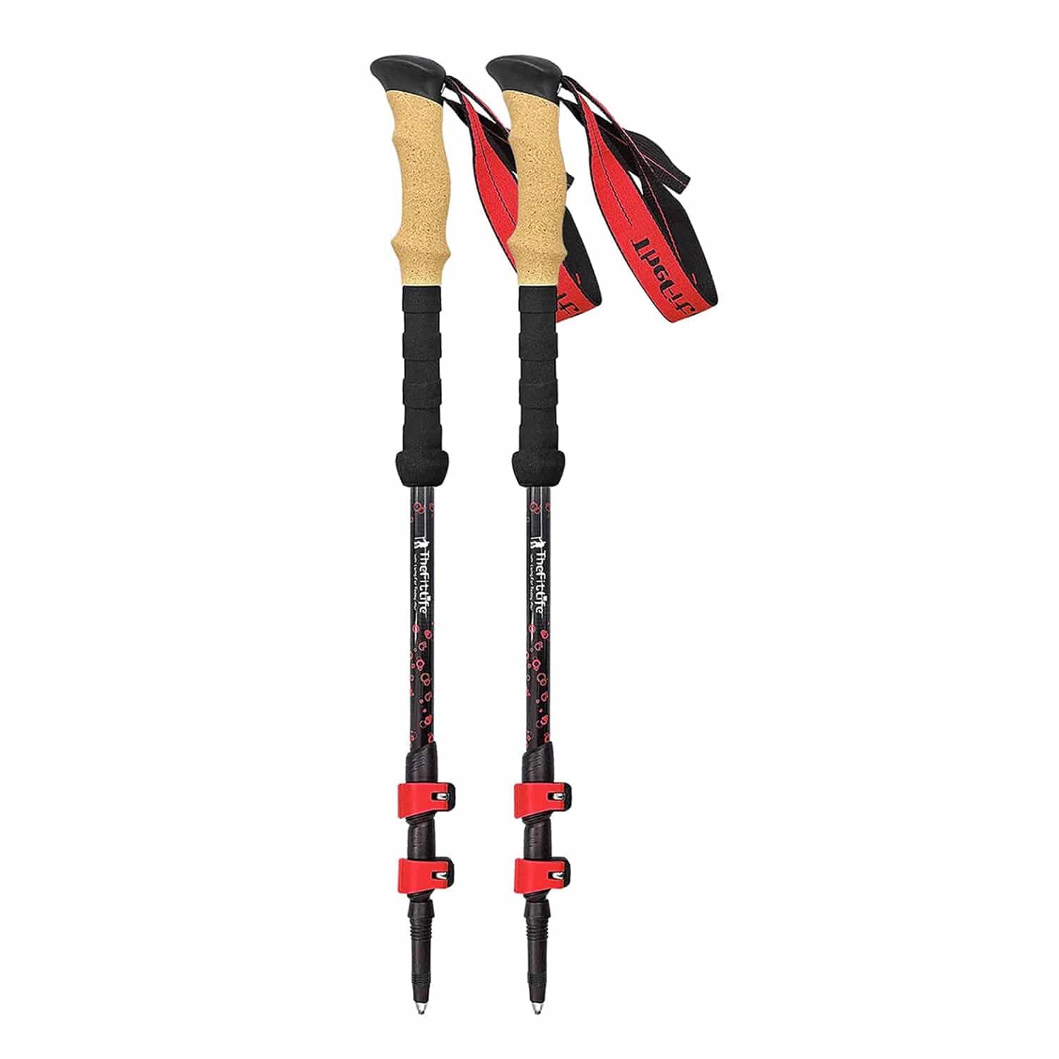 Comfort features include ergonomic anti-slip cork grips that accommodate palm shape while absorbing sweat, plus extended EVA foam sleeves for additional grip options. The adjustable wrist straps provide security during steep sections while allowing quick release when needed.