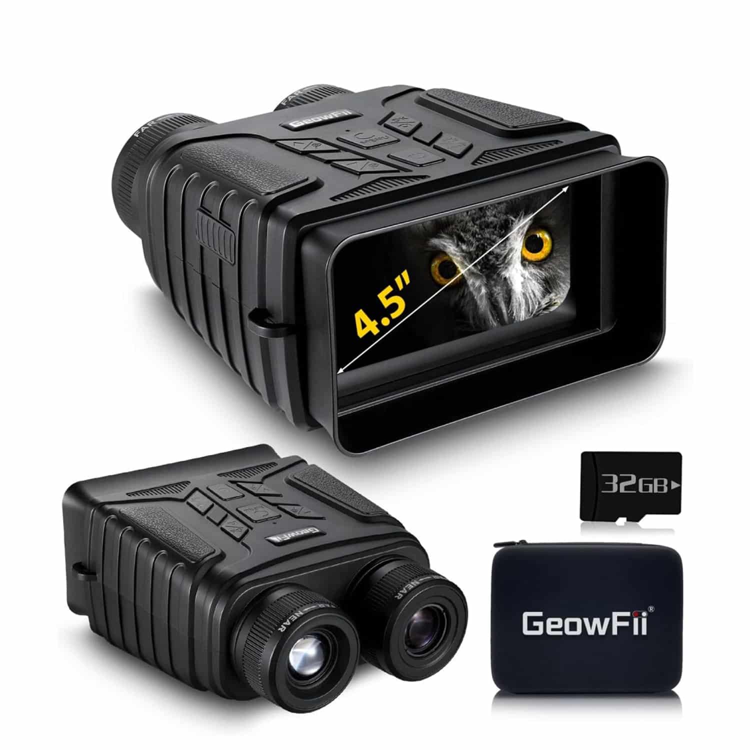 The GeowFiiTech Night Vision Goggles revolutionize viewing comfort with their unprecedented 4.5-inch IPS FHD screen—the largest true HD display in the category. Unlike competitors using magnified lenses, this genuine IPS screen delivers ultra-clear viewing that accommodates group observation and reduces eye fatigue during extended sessions.