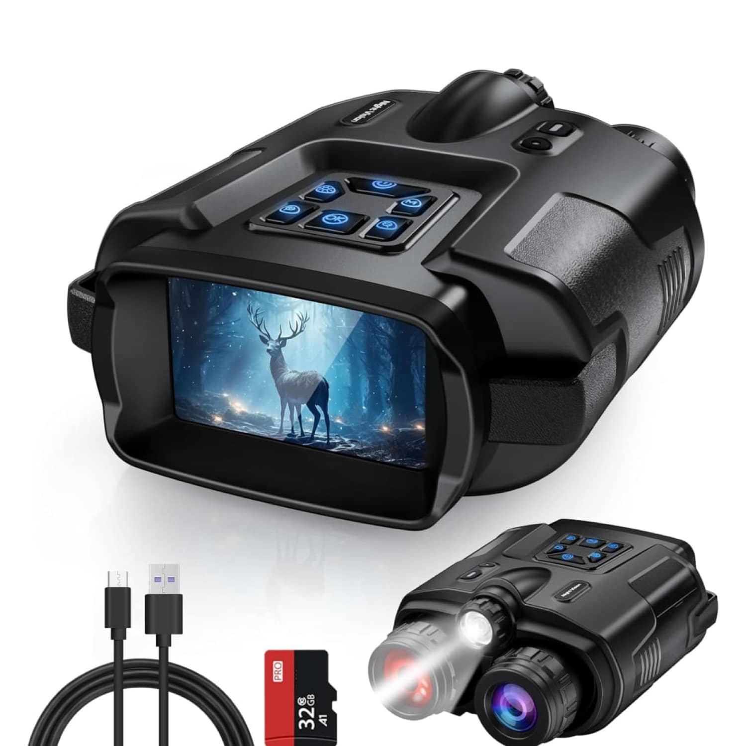 The 4000mAh rechargeable lithium battery delivers reliable performance with 10 hours daytime operation and 4 hours with infrared engaged. This extended battery life ensures you won't miss critical moments during overnight expeditions. The complete package includes a 32GB TF card, Type-C data cable, neck strap, and comprehensive user manual.